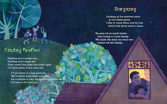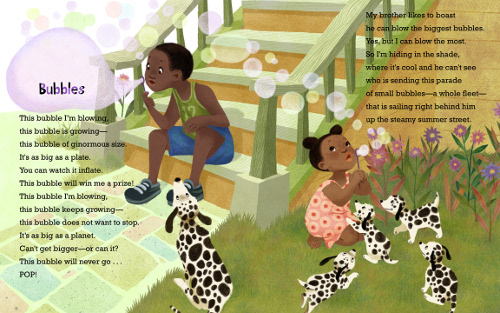 "From running through sprinklers to blowing bubbles to catching fireflies, this book has 18 short poems about active, imaginative play in summer weather. . . . An appealing book." --School Library Journal