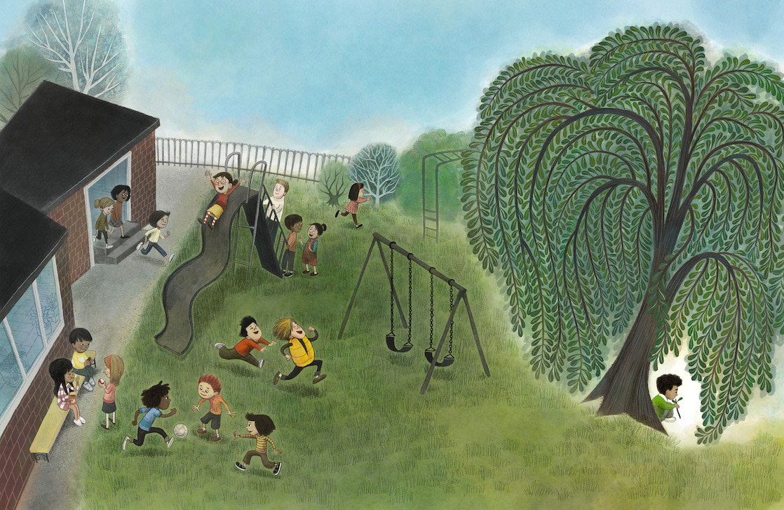 One day, when Rumi is made a target again, one of his classmates bravely steps in to defend him. It’s in that moment of solidarity Rumi’s class finally realizes that under the shade of the willow tree, all are welcome, and they create a space they can all play in—together.