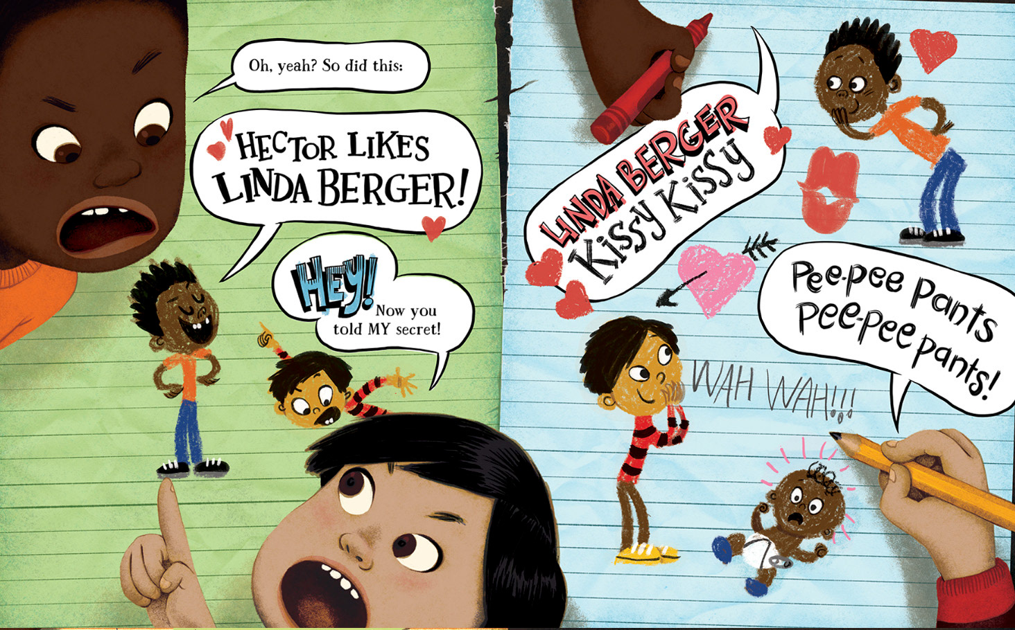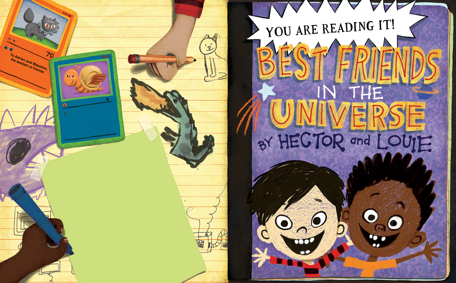 "In this meta-comedy about friendship, buddies Hector and Louie are creating an entire book about their relationship... Dialogue by Watson (Behold! A Baby) bubbles with a fun, noisy energy -- this is not a book to read aloud with your inside voice." — Publishers Weekly